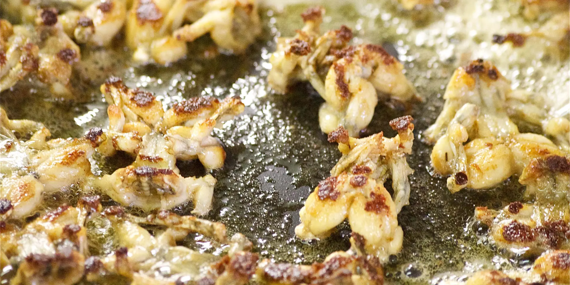 Frogs’ legs can be enjoyed in so many ways, for example in a stew, in breadcrumbs, or fried in butter.