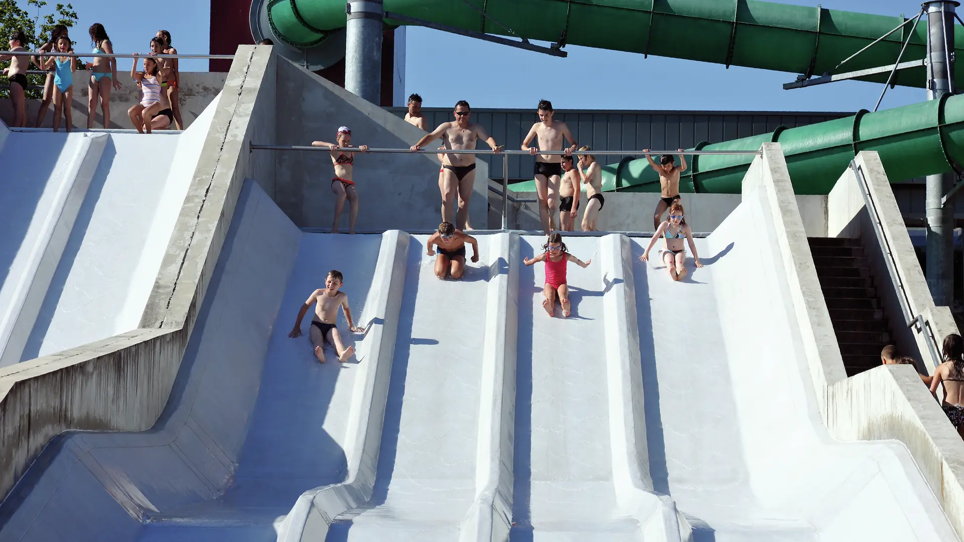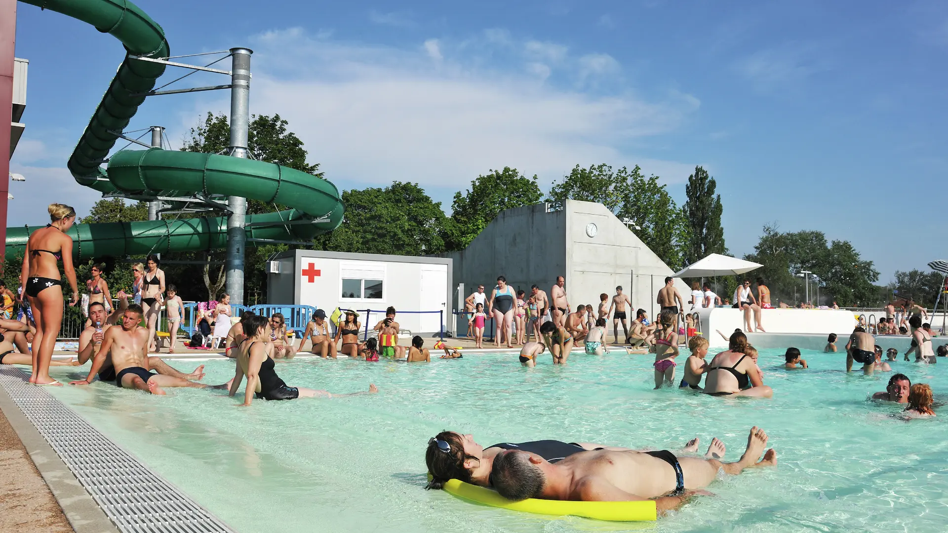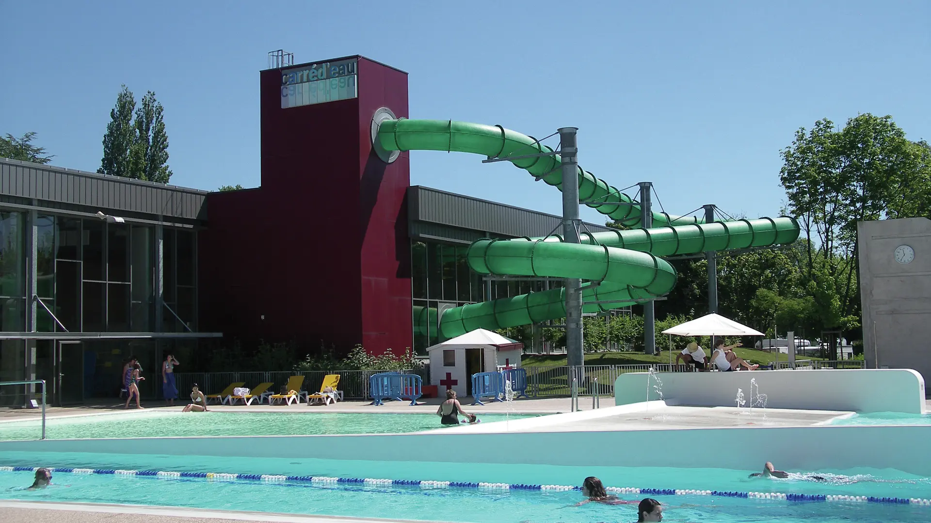 - A playful square: with a 300 m² pool with jets, a running river, a paddling pool with games and a slide.