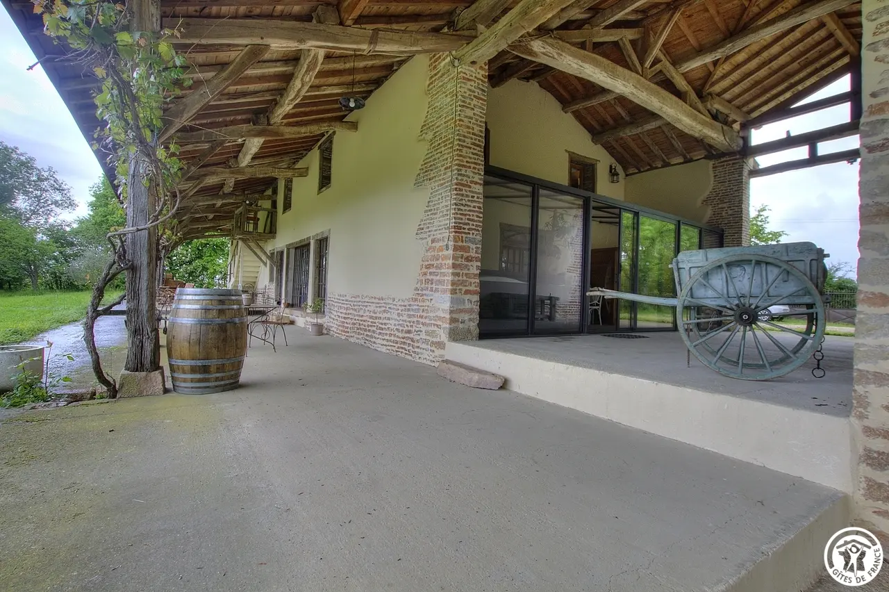 And if you had found the place conducive to relaxation and well-being? Ideally located, many discoveries are within everyone's reach. Fancy walks? The hiking trails are nearby (1 km). How about getting started in golf? So you have the choice: Bourg en Bresse at 21 km or the Commanderie sur Crottet at 13 km. Travel through time, and discover the exceptional heritage of Bourg en Bresse and its gastronomy. Have you ever visited the Moulins de la Bresse and this ancestral know-how... What if the holidays were synonymous with idleness? Lucas and Gaëlle will make every effort to ensure that your visit is a source of rest and fulfillment. Do you want more ? So treat yourself to a moment of relaxation with the Sauna and the whirlpool bath (30 € per half hour and 50 € per hour). Rather tempted by a wellness massage? Gaëlle will explain everything to you... This old farmhouse is full of special features: a tree planted in a bedroom, a barrel for the washbasin, old-fashioned suitcases, etc... But first, ask yourself. Take advantage of the dishes that are offered at the table d'hôtes or during breakfast. In summer: take advantage of the large covered terrace. In winter, the large living room with its wood stove welcomes you. The choice is yours now. You are ready to enjoy the warm atmosphere of your room. Is it Bressane? The hut or the bohemian? The three spacious bedrooms are a cocooning break to share. 1st floor: Cabin bedroom: a 180*200 bed. Semi-open bathroom. Independent WC.