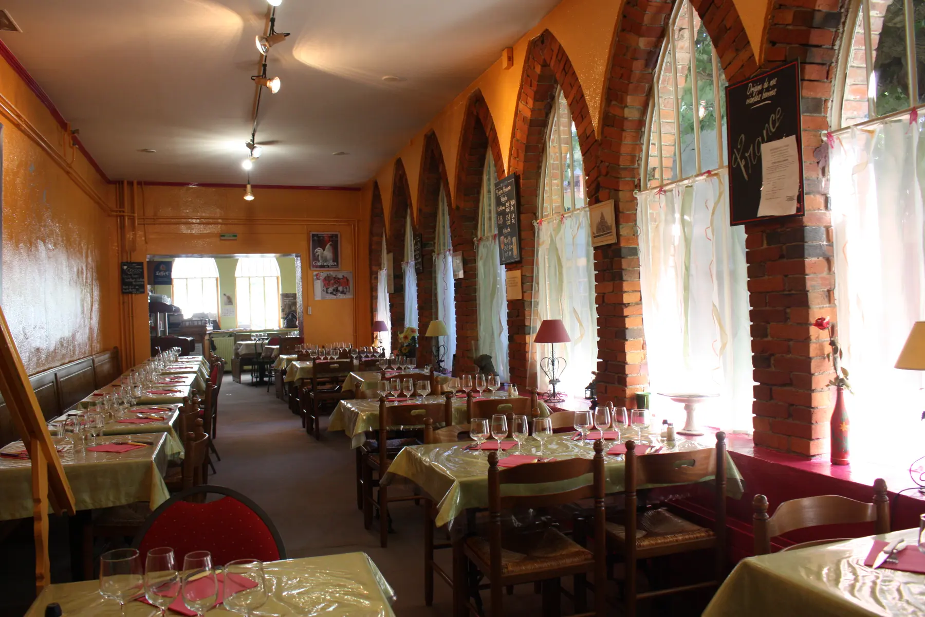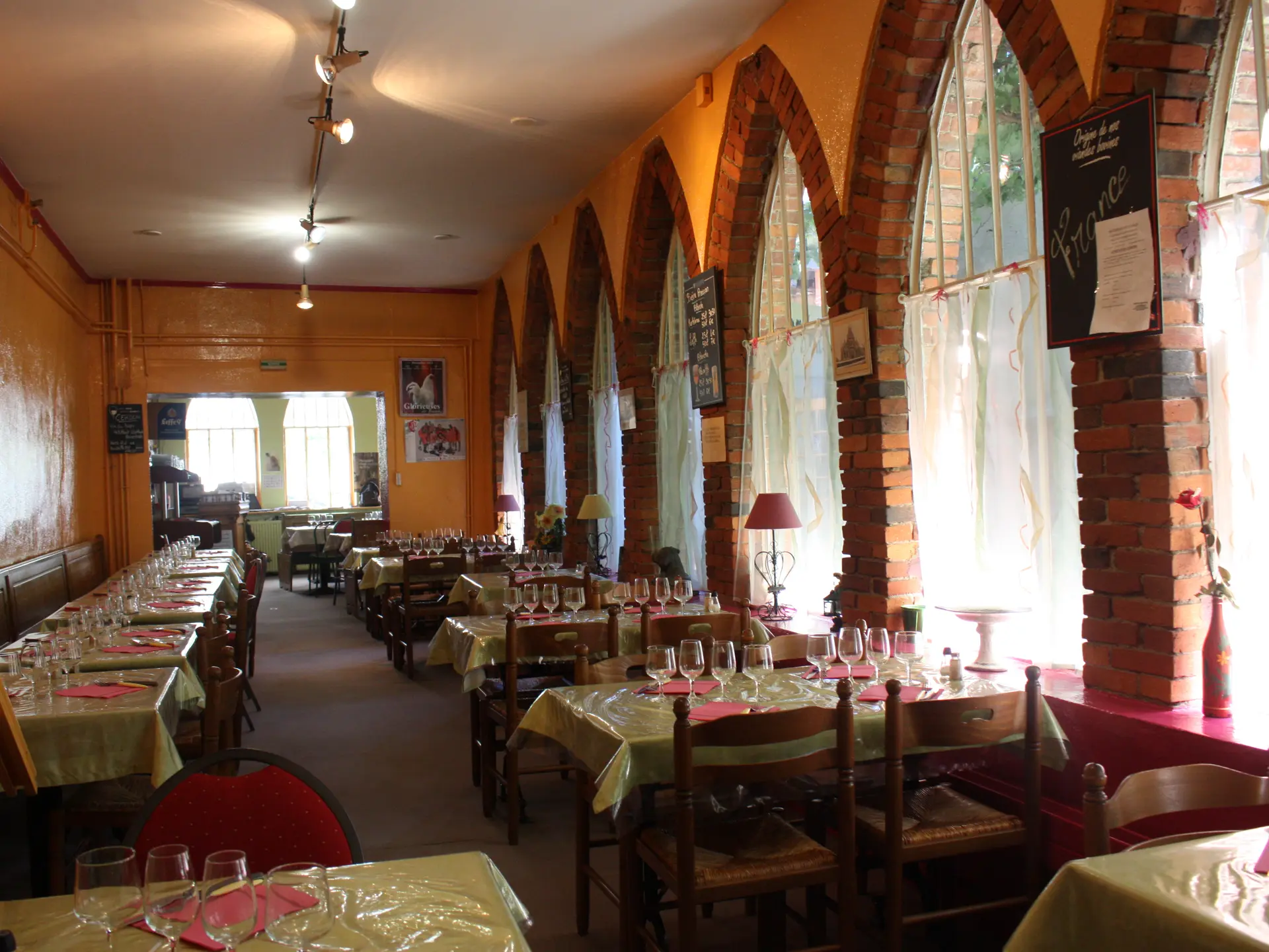 Friendly, smiling restaurant. Large shaded terrace facing the Royal Monastery of Brou.