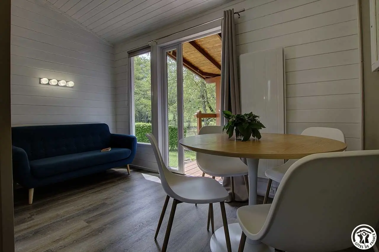 Whether you enjoy cultural tourism, hiking, mountain biking, fishing, or local cuisine, you'll find something to love at Camping de la Raza. The fully renovated "Le Gardon" chalet is 35 m² and features a living room with a kitchenette and sofa, a bathroom, two bedrooms (one with a double bed and one with two single bunk beds), and a terrace equipped with garden furniture and a barbecue. TV and free Wi-Fi access are provided.