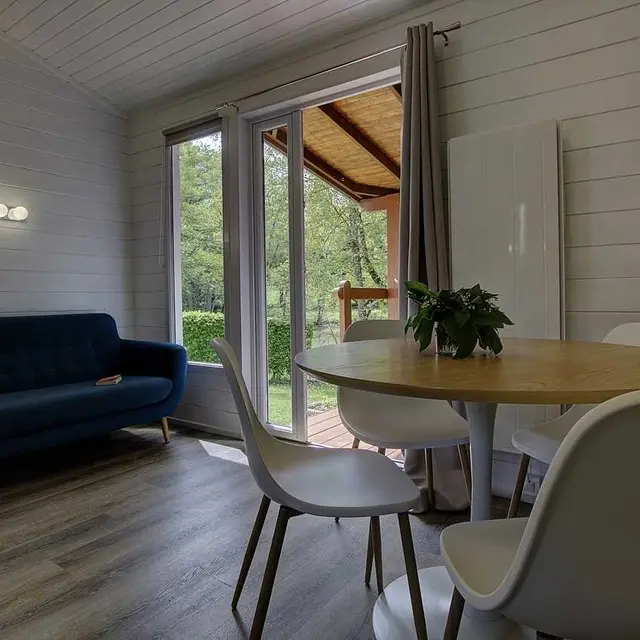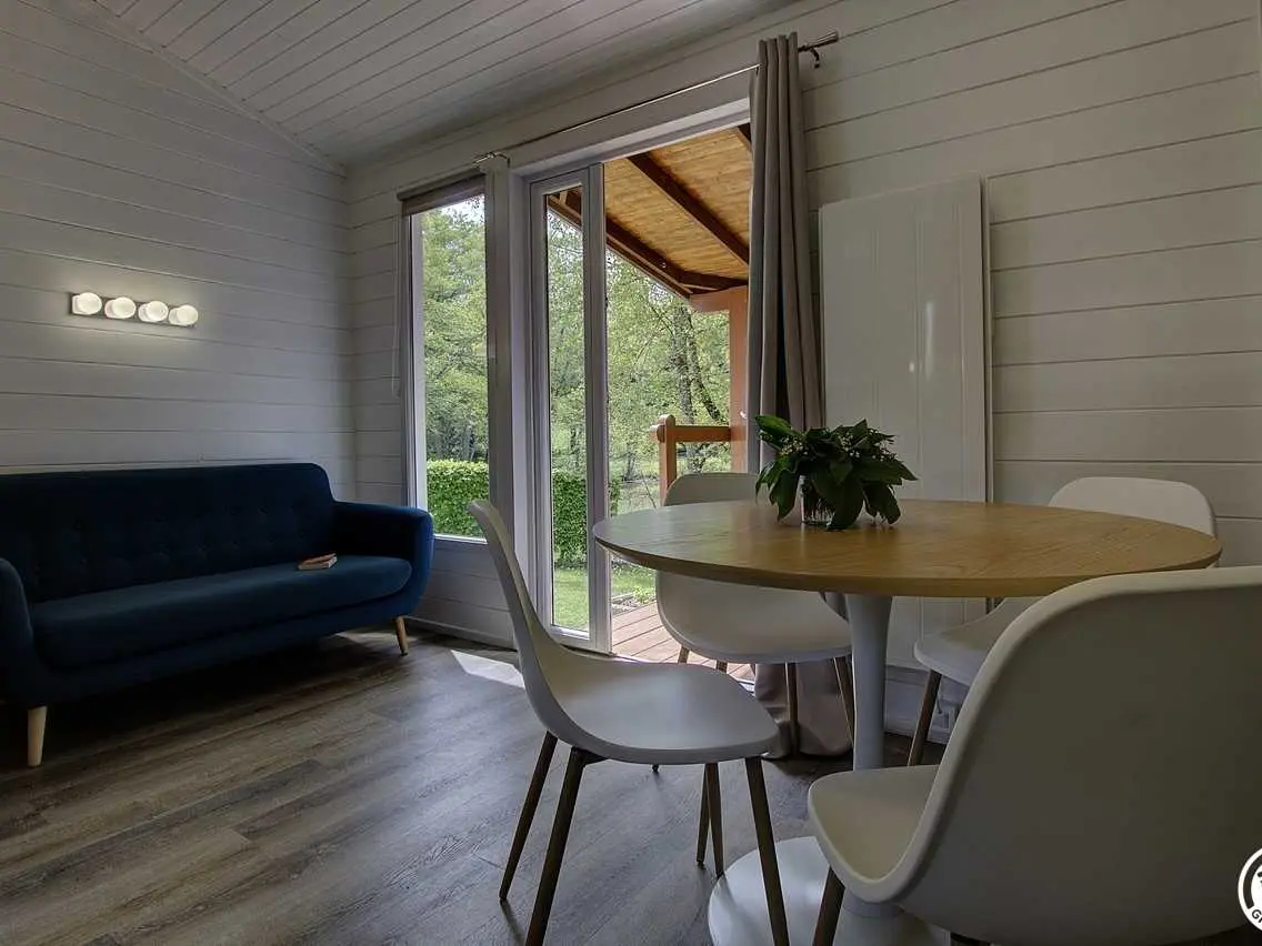 Extras: Bed linen, laundry room with washing machine and dryer shared by the 6 chalets and the campsite.