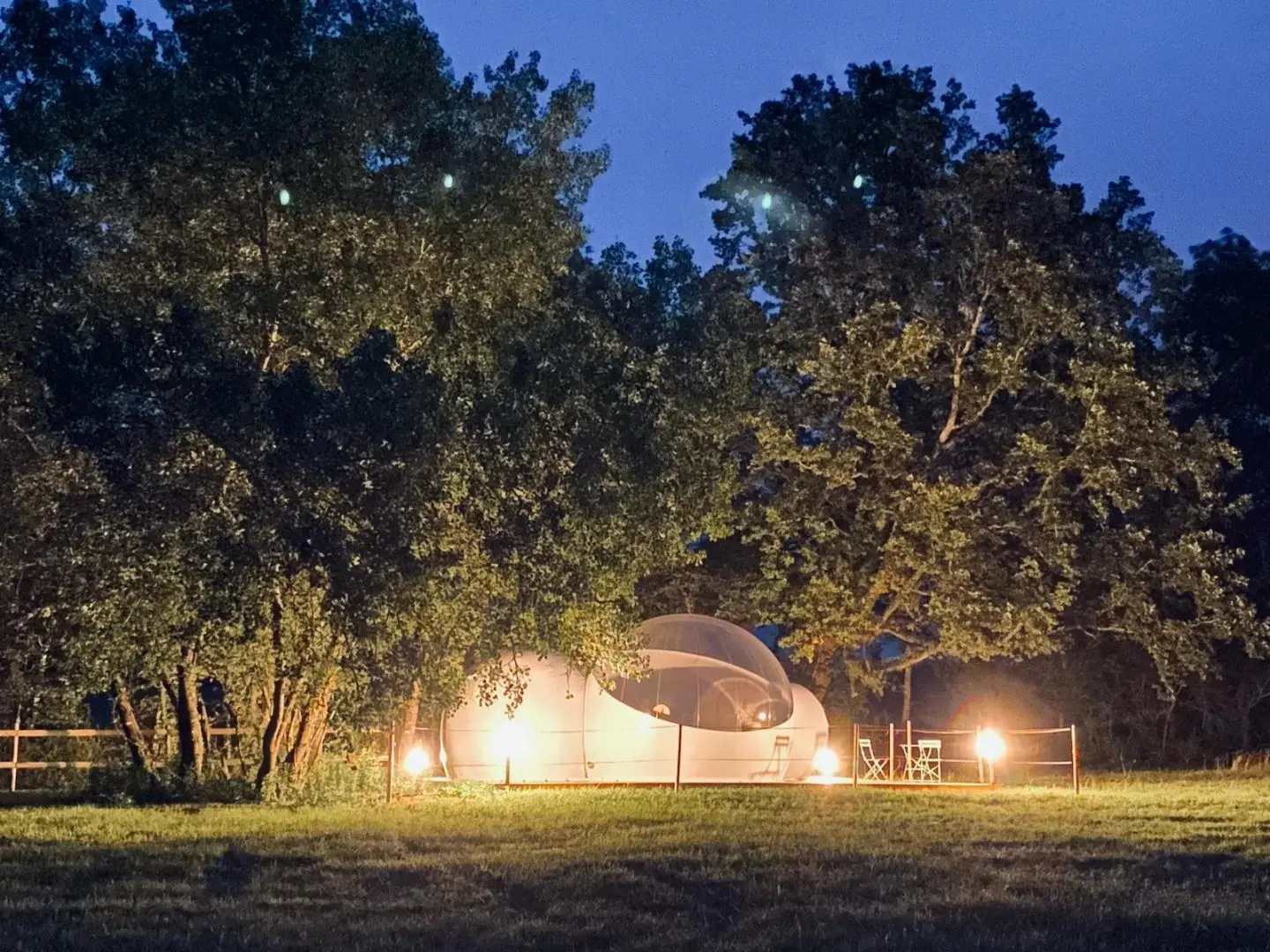 The bubble: a 140 bed with a bathroom with dry toilet. Open from April 1 to November 1. Electric heating.