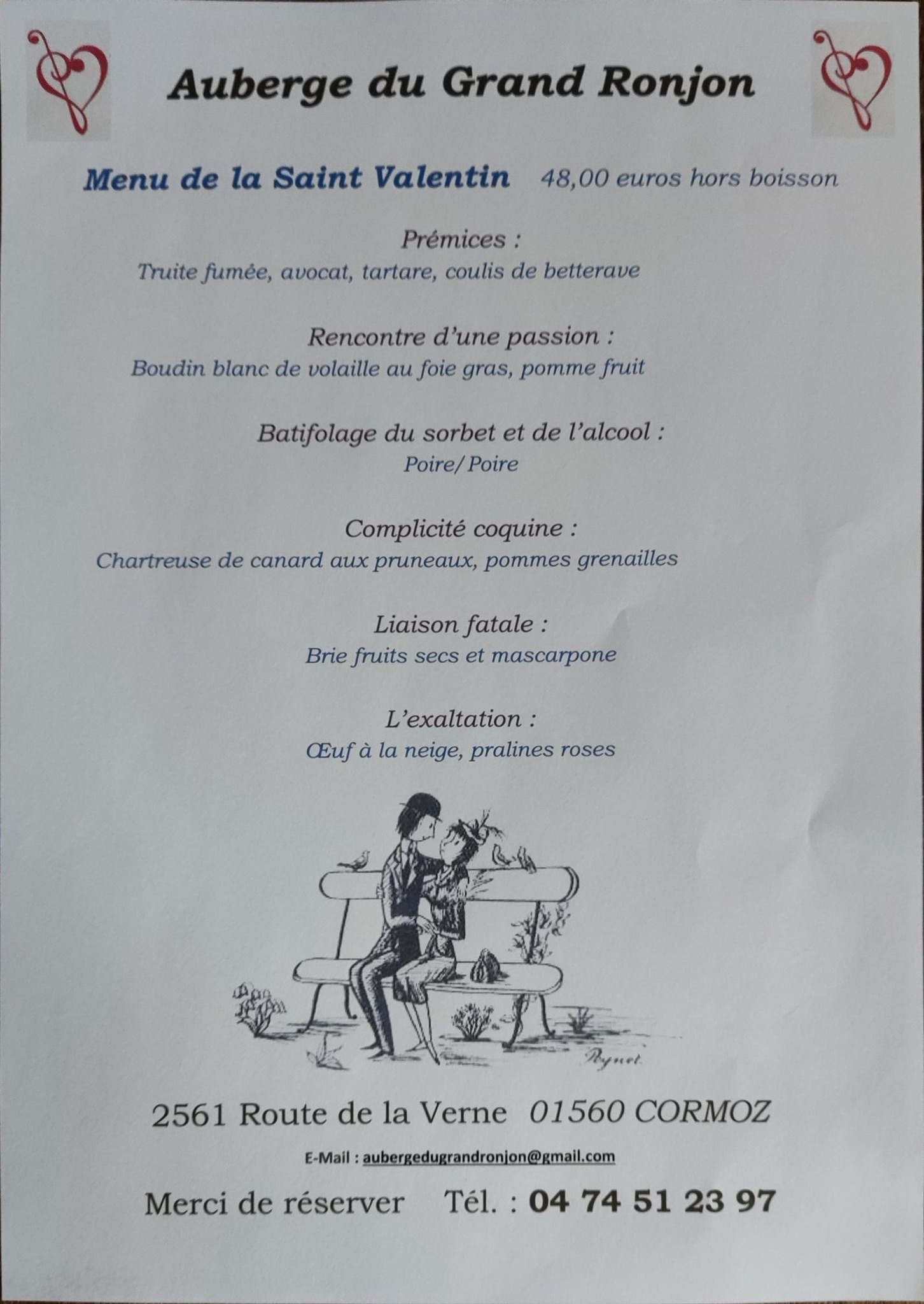 Menu de la Saint-Valentin - Auberge du Grand Ronjon