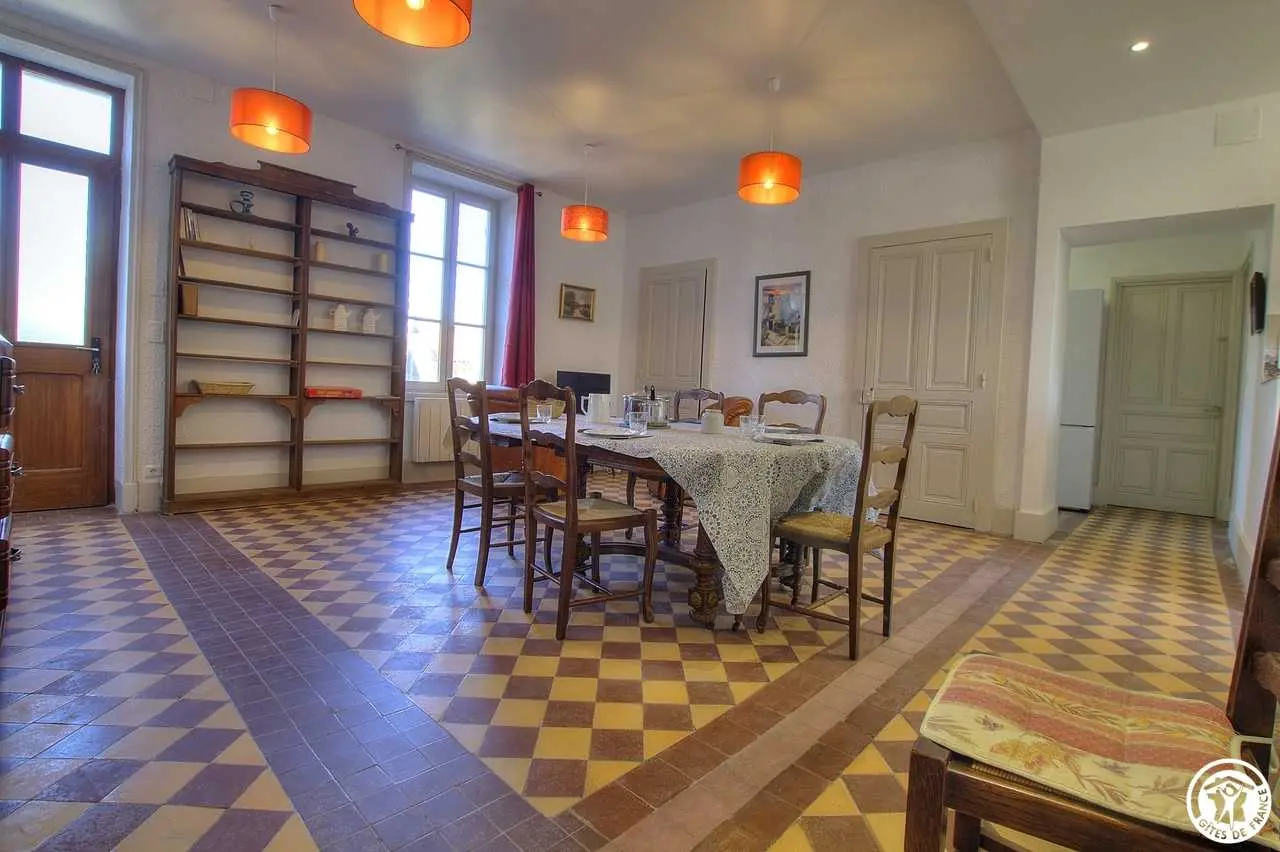 The renovated gîte, located on the ground floor, is designed to accommodate 5 people. Let yourself be seduced by the charm of the old which has been preserved: tiles of yesteryear, wooden floors, doors... A bit of modernity? The equipped and functional kitchen awaits you to prepare good meals. The enclosed exteriors (common to a second gite on the first floor) are provided for a moment of conviviality during a barbecue, or simply to ask. Gite accessible by 3 steps. A large living room with open kitchen. In the extension, a laundry area. Two bedrooms, one with two single beds (90*190) and one bedroom with 3 single beds (90*190). A large shower and sink. A separate toilet.