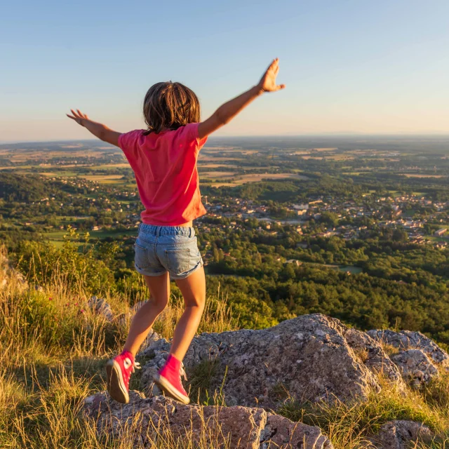 Balade en famille au Rocher du Jarbonnet. Probablement le plus beau rocher du département de l’Ain, vous dirons les amateurs d’escalade. A n’en pas douter, l’un des spots photos idéal. Du haut de ses 532 mètres, il offre un point de vue unique sur les gorges de l’Ain.